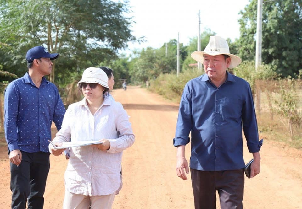 លោក អាន ស៊ីណា ប្រធានមន្ទីរអភិវឌ្ឍន៍ជនបទ ខែត្រត្បូងឃ្មុំ ធ្វើផ្លូវលំជនបទចាក់ស្ដើងស៊ីក្រាស់