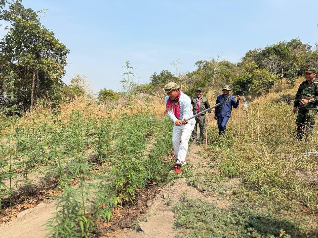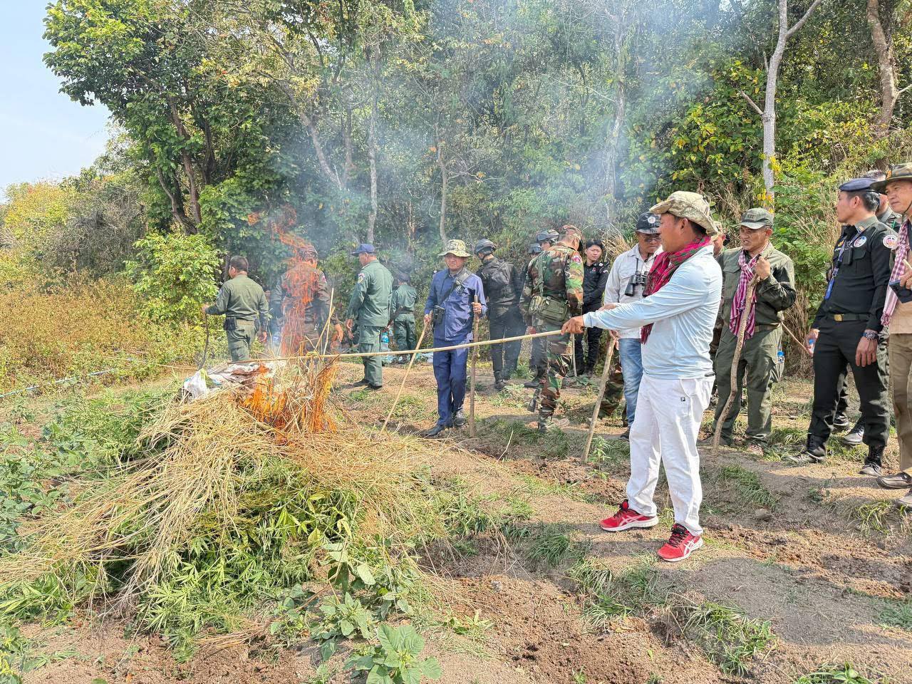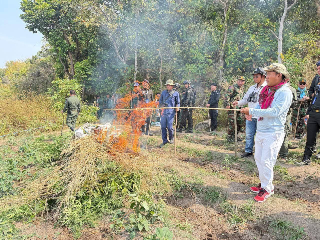ភ្នំពេញៈ លោក វ៉ី សំណាង អភិបាល ខែត្រតាកែវ និងជា ប្រធានគណៈបញ្ជាការឯកភាពរដ្ឋបាលខែត្រ បានដឹក នាំកម្លាំងចម្រុះ នៃគណៈបញ្ជាការឯកភាពរដ្ឋបាលខែត្រ ឡើងភ្នំកាប់បំផ្លាញដំណាំកញ្ឆាខុសច្បាប់ចំនួន៧ទីតាំង ព្រមទាំងដុតកម្ទេចចោលដើមកញ្ឆា ៣៣៦៥ដើម ស្មើនឹង១៨៩០ម៉ែត្រការ៉េ និងមានអាងផ្ទុកទឹក៦កន្លែងសម្រាប់ស្រោចកញ្ឆា ស្ថិតនៅត្រង់ចំណុចថ្មចង្រ្កានជួរភ្នំបាយ៉ង់ភូមិសាស្ត្រ ឃុំព្រៃអំពក ស្រុកគិរីវង់ ខែត្រតាកែវ នៅព្រឹកថ្ងៃទី២ ខែកុម្ភៈ ឆ្នាំ២០២៥។