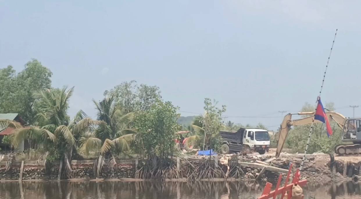 ខែត្រកែប: សកម្មភាពគ្រឿងចក្រជាច្រើនគ្រឿងបានញាប់ដៃញាប់ជើង គឺសម្រុកដឹកអាចម៍ដីចាក់លុបដៃព្រែកទឹកប្រៃយ៉ាងគគឹកគគ្រេង ក៏ប៉ុន្តែអភិបាលស្រុកលើកឡើងថា គេចាក់លើដីមានកម្មសិទ្ធិដើម្បីធ្វើកូនរោងបាយតូចមួយ។ ករណីនេះកើតឡើងនៅ ភូមិអង្កោល ឃុំអង្កោល ស្រុកដំណាក់ចង្អើរ ខែត្រកែប។