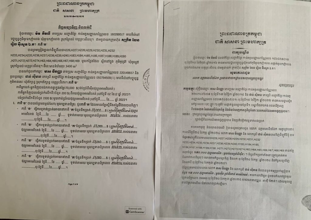 ២០២៤ លោក មាស ធីបញ្ញា និងលោកស្រី ផាន់ ស៊ីមាន បានទិញដីឡូត៍ពីខ្ញុំបាទចំនួន៣៤ឡូត៍ ដែលមានលេខ H226,…មាន